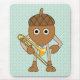 An acorn nut holding a trombone is a humourous musical instrument gift design to tickle the funny bone of low brass musicians in concert, jazz and marching band.