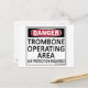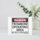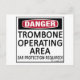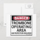 Danger, Trombone Operating Area! Ear Protection Required! This gives them fair warning! See all our musical designs on on cups, mugs, tee shirts, sweatshirts, hats, and other gifts and clothing.