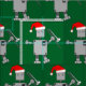 A robot wearing a Santa cap and holding a trombone is a funny gift design for low brass musicians, music teachers and school students in concert and marching band at Christmas time. Image size and background colour are customizable.