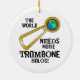 The world needs more trombone solos text with the image of the earth in the bell of a trombone is a funny low brass gift design for horn musicians, students and teachers in concert, jazz and marching band