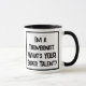 Funny slogan on a Two Tone Coffee mug that says "I'm a Trombonist. What's YOUR super talent?". Two Tone Coffee Mug for a Trombonist. Black and white bold text.