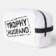 Trophy Husband funny toiletry bag travel kit for men. Cute gift idea for newlywed men. Vintage stamp design.