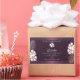 Make a lasting impression with this elegant and exotic product label design featuring cute white hawaiian flowers and palm leaves on a purple background. A cool palm leaf shadow matching to the shimmery border frames.