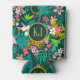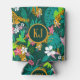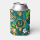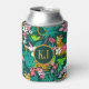 Colourful jungle flowers and leaves with tropical animals in a seamless pattern—customizable monogram.