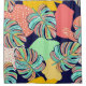 Pattern design of a tropical artwork, with multicolored monstera leaves and fun mosaic background