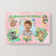 This charming Tropical Baby Animals Button is perfect for kids' birthday party favours, imagine a vibrant, tropical jungle theme with adorable baby animals. Picture a button with soft, pastel-coloured tropical leaves as a background, creating a gentle and lush atmosphere. At the centre, there’s space for a custom photo of the birthday child, adding a personal touch that makes each button unique. Surrounding the photo, cute tropical animals give a sense of fun and adventure.