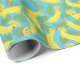 Have you ever seen wrapping paper that's more bananas? It's a dog! It's a banana! It's dogs made out of bananas! These yellow dachshund style dogs made out of fruit are accompanied by green palm leaves and set against a bright blue background.