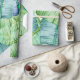 Watercolor jungle banana leaf wrapping paper in accents of green and blue.