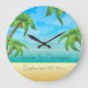 Tropical Beach and Palm Trees Wedding Memento Large Clock