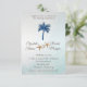 Tropical Beach Blue Glitter Palm Wedding Invitation