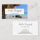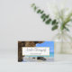 Business cards with a scenic nature photograph. Beautiful turquoise blue sea with a sandy beach. A big brown rock provides some shade from the bright blue sky.