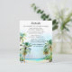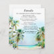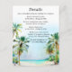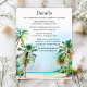 This elegant and beautiful watercolor wedding details card features a beach, blue sky and palm trees. The text combines handwritten script and sans serif fonts for a stylish and modern look. This is perfect for a summer beach or tropical destination wedding.