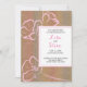 Tropical beach theme brown and pink wedding invitation. Invite guests to your wedding with this customizable tropical wedding invitation. It features floral hibiscus leaves. Personalize this tropical theme wedding invitation by adding your own details. This colourful botanical wedding invitation is perfect for destination weddings, beach and summer weddings.