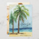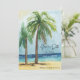 Watercolor palm tree design photo save the dates for your beach destination wedding. Add your details to the front and your photo to the back.