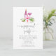Watercolor beach wine tasting engagement party invitation featuring pink hibiscus designed to be quickly and easily customized to your event specifics.
