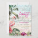 tropical beach flamingo 70th birthday party invitation