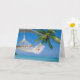 Greeting card shown with a photo print of a beautiful tropical beach with palm and hammock scene. Customize this card and add your own special message or buy as is. Blank Inside