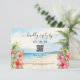 Ensure your guests can easily respond to your special day with our Tropical Beach Hibiscus RSVP card. This response card captures a stunning beach scene, with tranquil blue waters meeting the bright sands of a picturesque island. The vibrant watercolor design showcases hibiscus flowers in rich shades of orange, pink, and red, complemented by lush tropical greens. The serene yet colourful backdrop sets the tone for your tropical wedding, making it a beautiful and functional addition to your wedding suite.