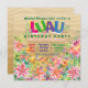 Luau birthday party invitation with colourful watercolor tropical plants and flowers on a beach sand background. You can easily customize this fun luau birthday party invitation for your event by simply adding your details.