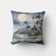 Tropical Beach Night Sky Moon Watercolors Throw Pillow