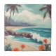 Tropical Beach, Ocean, Hibiscus Flowers Tile