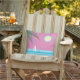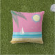 This fun outdoor cushion is decorated with a tropical beach scene accented with starfish, seagulls, a sailboat and palm leaves on a pink sky background, making it the perfect summertime accessory for the beach house, pool house, cottage, patio, deck or pool area.