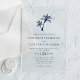 This simple minimal tropical beach navy blue acrylic wedding invitation features two palm trees at the top, with classic elegant text.