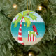 Tropical Beach Palm Tree Red Cardinal Christmas Ceramic Ornament