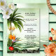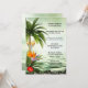 Un post ou après une invitation à la fête de mariage avec une plage tropicale avec palmiers, lanternes et fleurs exotiques colorées, donnant sur un océan vert turquoise. Idéal pour une réception uniquement ou une fête après le mariage avec une plage ou un thème tropical.
