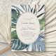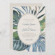 Invite your guests to paradise for a day with this elegant tropical palm leaves design. Featuring a spray of assorted tropical leaves in serene blues and greens and a stylized rattan pattern on the back, this design embodies a breezy day underneath the palm trees. Perfect for your casual beach affair or destination celebration in the tropics. Shop the collection today for matching stationery, and get away to the perfect day!