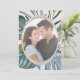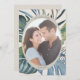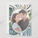 Invite your guests to paradise for a day with this elegant tropical palm leaves design. Featuring a spray of assorted tropical leaves in serene blues and greens and a stylized rattan pattern on the back, this design embodies a breezy day underneath the palm trees. Perfect for your casual beach affair or destination celebration in the tropics. Shop the collection today for matching stationery, and get away to the perfect day!