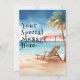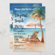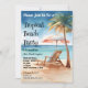 The front of the invitation is adorned with elegant, flowing script that reads, "Please Join us for a Tropical Beach party," inviting guests to partake in a day of joy and enchantment. Inside, the details of your spellbinding event, ensuring all the information is conveyed with a touch of tropical charm.