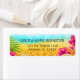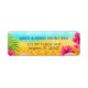 A tropical beach themed return address labels. Featuring a modern design with palm tree branches, pink Hibiscus flowers and seashells on a tropical beach.