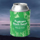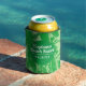 Tropical Beach Resort Can Cooler. Name of the Hotel or Beach Resort, together with its location. Tropical Palm Trees Design Can Cooler in Green Colours. Leaf pattern design shows a silhouette effect pattern of leaves. Ideal for beach resort shops or holiday hotel promotions.