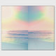 This Beautiful Tropical Beach Holographic Sunset seascape photo print brings to your home decor a sense of a calm, relaxed summer holiday. Featuring an amazing sunset with iridescent rainbow colours over the sea, pink and green ocean calm waves, shining light blue and lavender gradient beach sand, and a light rainbow-coloured glowing sun, projecting a blend of pink, teal, blue, aqua green, turquoise and yellow pastel colours horizon coast background.