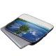 The sleeve is made of nice feeling material and seems very durable. I'm not sure how easy it'll be to clean, but the construction seems sound and the fabric is quick thick. I also like the double zipper. The printing is lovely and appears durable. The white on black contrast is nice, and the design very elegant.