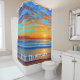 This beautiful curtain features a stunning ocean sunset, with personalized name, in soft hues of blue and turquoise. Perfect for a honeymoon, beautiful beaches, and divine, sandy shores, this gorgeous beach landscape is sure to bring the beauty of the ocean waves crashing on the shore right into your bathroom!