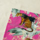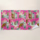 Tropical Beach Tiger Palm Trees in Hot Pink Beach Towel