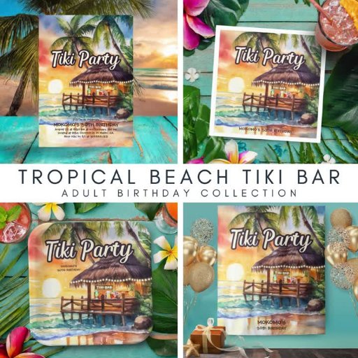 Add an exotic and eye-catching touch to your birthday party decor with this Tropical Beach Tiki Bar tapestry! Featuring an enchanting tiki bar on the beach, watercolor sunset, ocean waves and palm trees, this island-inspired artwork will add a festive ambience and set the mood for a good time. The name and occasion text can be personalized to suit any event - birthday, anniversary, graduation, retirement party, etc, and makes a great backdrop for photos. So light the tiki torches, enjoy some exotic cocktails and let the fun begin!