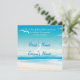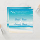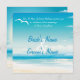 Teal blue Ocean and clear blue sky. Ocean waves crashing to the shore , seagulls flyng in the sky and a silhouette of palm trees - Fully Customizable Wedding invitations and matching extras.