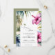 Tropical beach wedding save the date card, watercolor palms pink hibiscus for summer tropical destination wedding save the date card