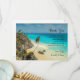 Thank you card with a beautiful photo featuring Tulum, Mexico. Turquoise waters on a sandy shore. Wind swept palm trees blowing in the breeze near a craggy cliff side. Soothing and relaxing.