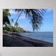 Relax on the black sands of Hawaii. The calm blue ocean and the tropical green palm trees swaying in the breeze. It's hard believe it is a volcanic island.