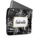 A bold and modern palm tree leaf pattern on a laptop sleeve perfect for the stylish and trendy beach lover and island vibe living that can be personalized with your name or any custom text. Your laptop will feel like it's on vacation!