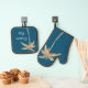 Tropical Blue Gold Glitter Palm Tree Oven Mitt & Pot Holder Set