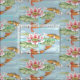 A soft light blue colour background highlights my watercolor koi fish and pink lotus - water lily in a stylized fish pond. The water seems to shimmer in bands of blues and greens. Beautiful tropical or oriental themed fabric for crafting, clothing or decor. Elegant and trendy contrasting colours of teal, orange and pink. Original artwork & design by Tuzi Williams.