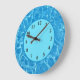 A beautiful blue swimming pool wall clock with a bright blue tropical water texture border.