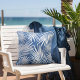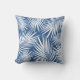 Tropical Blue White Palm Leaves Outdoor Pillow