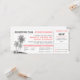 boarding pass wedding invitation tickets with RSVP. Bright silver beach palms and light pink colour design excellent for romantic destination wedding.