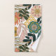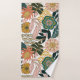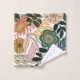A modern boho style towel set with painted tropical stylized florals and greenery.